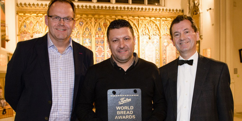 The awards ceremony was hosted by Stephen Hallam, Master Baker, managing director of Dickinson & Morris and chair of the judges. He announced that Lee Smith (pictured: center) of Bexhill Farm Kitchen & Poppy Seed Bakery, East Sussex, won the Great British White category – and was the overall winner of the Awards.