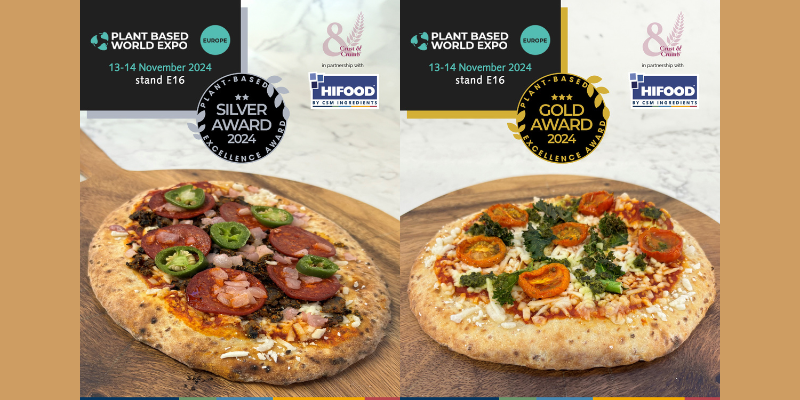 HIFOOD – company specialized in the research, development, and production of natural ingredients, and part of CSM Ingredients group – and Crust & Crumb Bakery – the largest manufacturer in Ireland of ambient, chilled, and frozen dough-based products – have won two Plant-Based Excellence Awards. The two companies received the awards for their joint submission of plant-based, wood-fired pizza concepts enriched with PROTEIOS, HIFOOD’s Textured Vegetable Proteins, as follows: