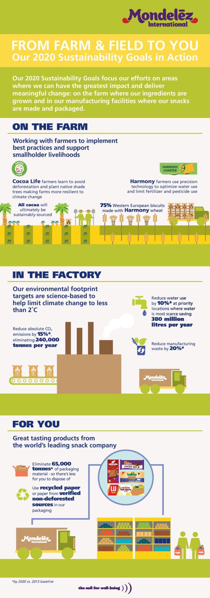 Mondelēz International has announced its sustainability goals for 2020, an ambitious end-to-end approach to reduce its carbon footprint.