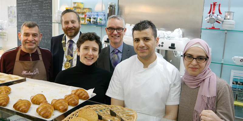 Photo caption: Bashar Helmi, Ronnie Miles (Scottish Bakers), Gougeon, Alasdair Smith (Scottish Bakers), Mohamed Helmi, Tasmin Helmi