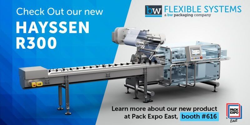 BW Flexible Systems, a global leader in flexible packaging solutions for food and non-food products, will introduce the Hayssen R300 to its flow wrapper portfolio at PACK EXPO East, held March 18 to 20 in Philadelphia. The Hayssen hand-fed flow wrapper provides a simple and user-friendly experience for operators, with innovative features that allow for easy changeovers and automated adjustments to maximize uptime. The Hayssen R300 is ideal for flow wrapping baked goods like single cookies, brownies, Danishes, croissants, small pies, whoopie pies, crispy rice treats and more.