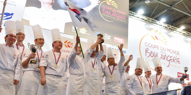 1st place: South Korea – Baguette and Bread of the World (Chang-Min LEE) ; Viennoiserie and Savoury Bakery (Jong-Ho KIM); Artistic Creation (Yong-JooPARK)
