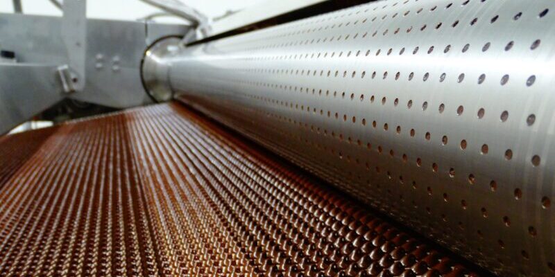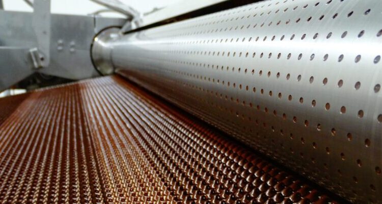 The Rotoform HP integrates a heated stator and perforated rotating shell to deposit liquid chocolate onto a continuously moving steel belt. Synchronised deposition and rapid cooling ensure minimal deformation and limited oxygen exposure, supporting product quality and shelf stability. The system also allows flexible output, with chip sizes ranging from 80,000 to 300 pieces per kilogram through interchangeable components.