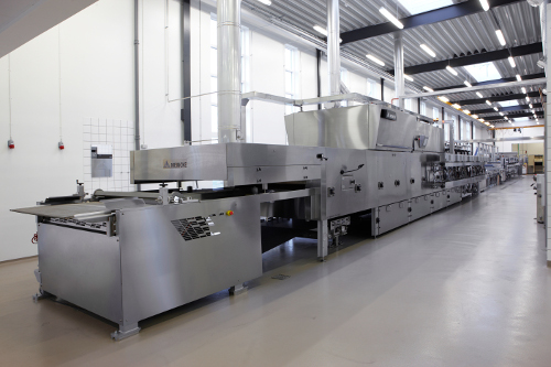 MECATHERM is also launching a new modular handling system, the M-UB handling system, that ensures products are delicately handled. Its trays are on a continuous loop, which means a homogenous transport in every process step. No shocks affect the product, so there is no danger that it could collapse, and there is no friction, which ensures food safety through no risk of contamination.
