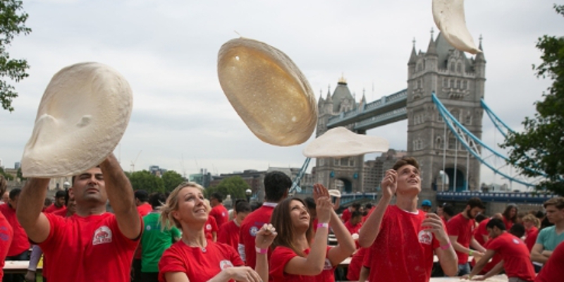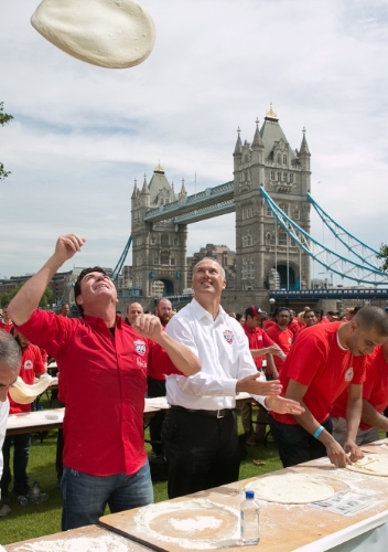 Lead by Papa John’s Founder and CEO, John Schnatter, the team had the aim of setting a new Guinness World Records title for the most people tossing pizza dough simultaneously, on London’s PottersFieldPark, beside TowerBridge.