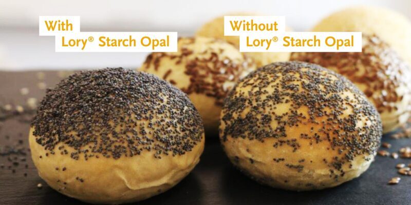Norbert Klein, head of product development at Loryma, says: “Manufacturers want less rejects, while consumers want an appetizing product. Lory Starch Opal meets both these demands: decor, grains and seeds adhere firmly and with a glossy surface, the baked goods make a fresher impression. Food waste due to material loss is thus reduced to everyone’s satisfaction.”