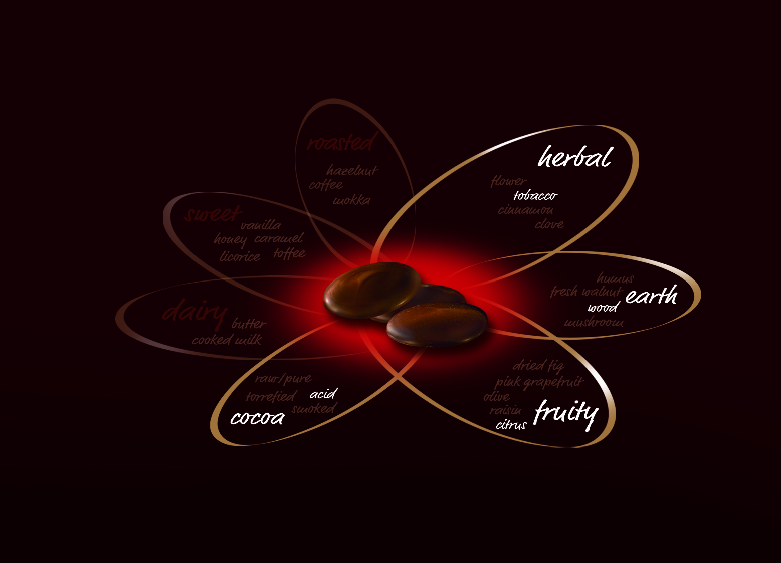 They are produced using carefully selected cocoa beans, which reflect the differences of the regions where they are grown. The distinctive flavours of all Origins chocolates are analysed and identified by ‘Les Arômes de Cyrano’, a scientific and sensory analysis tool developed by Belcolade. Thanks to their unique and splendid aromas, they continue to inspire patissiers, chocolatiers and bakers all around the world to make innovative tasting applications.