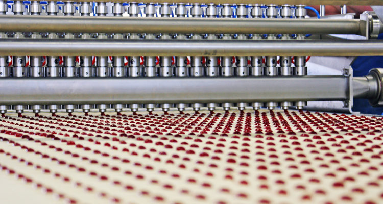 When dealing with fillings that may be liquid, viscous as well as with chunky textures, i.e., fruit pieces, challenges arise. One of the biggest challenges is the need for one hybrid depositor that can do it all. This is very hard to achieve because, in some way or the other, you have to make compromises that will lead to lower accuracy. That is why Rademaker has a different range of depositors, to ensure they provide the best possible accuracy and quality. The type of filling is key for the design of the depositor for the company. Rademaker’s High-Speed Depositor, for example, has a wide variety of depositing possibilities, including discontinuous and continuous depositing of liquid and semi-liquid fillings (jelly, jam, pastes) without seeds/skins. Additionally, The Mohno Pump Depositor can deposit in spot, discontinuous or continuous filling strips. This system has a high depositing accuracy due to the individual volume control per nozzle. The auger and mohno pump combination enables depositing materials that include large parts such as vegetables and fruit. Each row is individually driven and controlled.