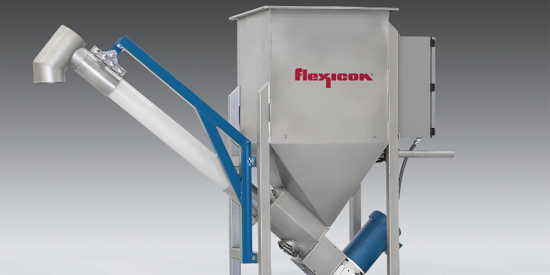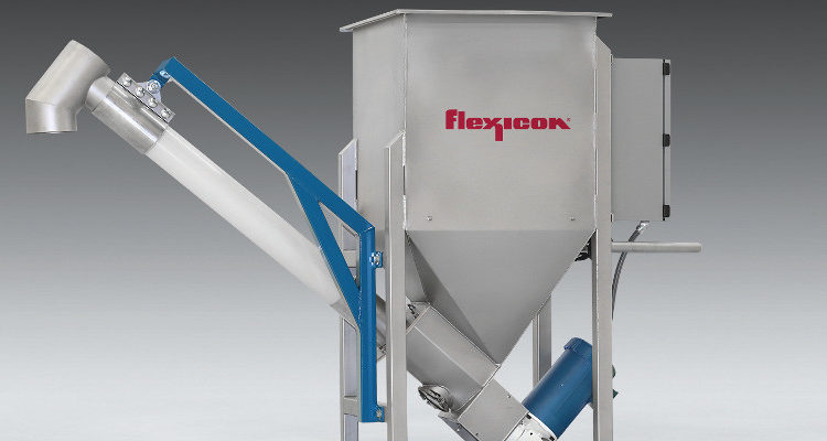 British equipment producer Flexicon presents a new low profile flexible screw conveyor with integral bin and castor-mounted frame which can roll below mezzanines and other low-headroom areas, receive material from overhead equipment, and discharge the material into process equipment and vessels throughout the plant.