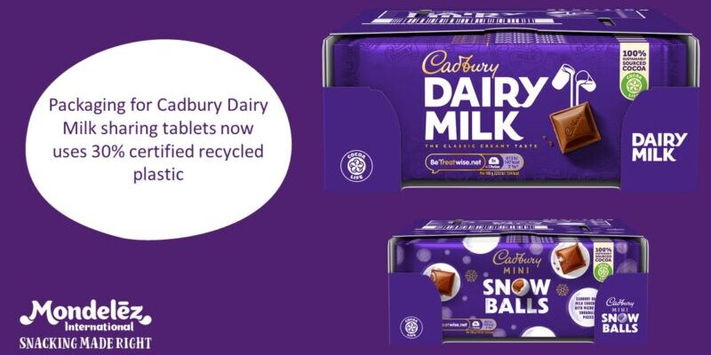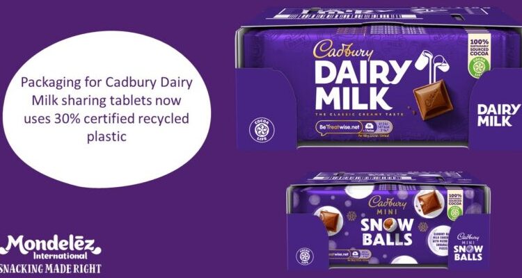 Mondelēz International announced that its Cadbury Dairy Milk and Cadbury Mini Snowballs 110g sharing bars, which are sold in the UK and Ireland, are now wrapped in packaging with 30% recycled plastic. The company has started to roll out the packaging innovation on more than 28 million sharing bars.