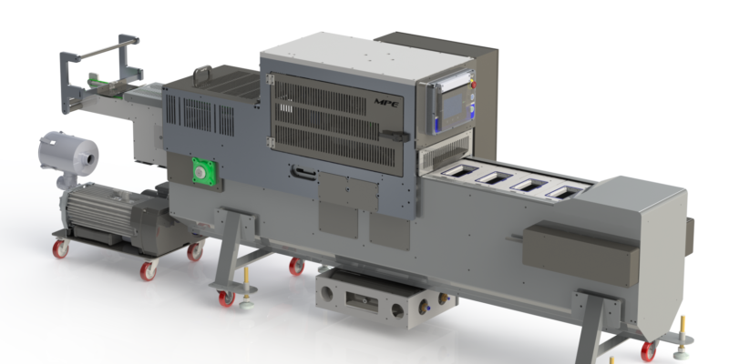 MPE’s SL1400VG has a recipe-driven configuration system allowing for a rapid switch of products which are loaded into the machine and indexed until they move into the seal station. The SL1400VG then modifies the atmosphere in the pack and hermetically seals the product which is delivered onto a flat belt for final packing and transport. The machinery seals up to 20 packs per minute.