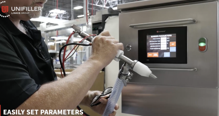 Sonia Bal, Director of Marketing at Unifiller Systems, says, “Deco-Mate with Electro-Mate automates the shell bordering of round and sheet cakes for easier application, without injury or strain to the worker. Automated equipment, especially machines designed specifically with ergonomics in mind, are an excellent solution for protecting businesses from labor shortages that result from employees working in discomfort and sustaining injuries, if not burnout. The Deco-Mate with Electro-Mate automates the process of applying borders to cakes by eliminating the need to repeatedly squeeze a pastry bag.”