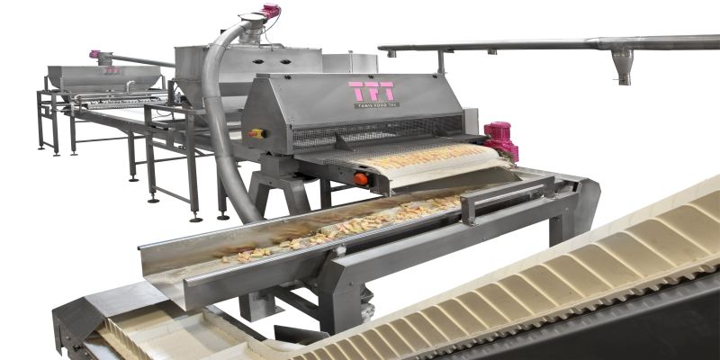 A challenge Tanis Food Tec answered process-wise is the reducing of its temperature from 55ºC to 40 ºC in the new process. At this temperature there is no need for a cooling conveyor (tunnel) after extrusion. The total length of the production line is significantly shortened to 12 meters which was 30 meters.