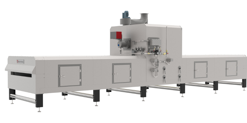 Modules are arranged on-site to form an oven with a number of separate baking zones. Each zone is specified to achieve the necessary baking profile, with independent temperature, extraction and airflow control.