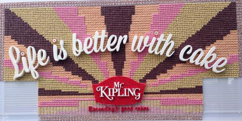 Mr Kipling, owned by Premier Foods, has created a poster board made from baked goods as part of its ‘Life is better with cake’ campaign.