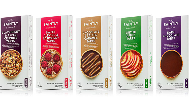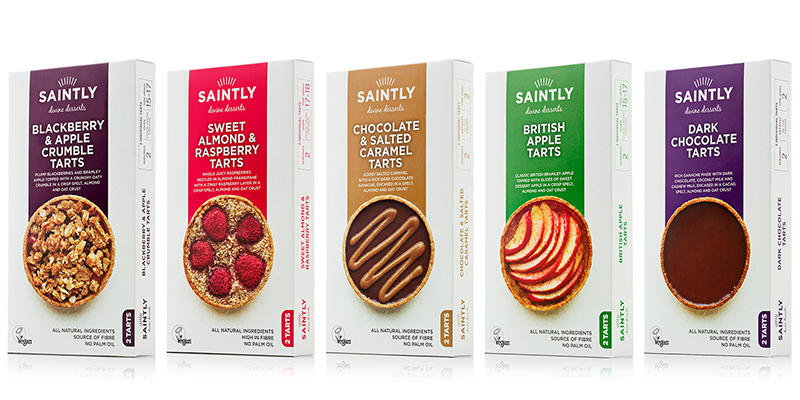 The Saintly range comprises: Blackberry & Apple Crumble Tarts; Sweet Almond & Raspberry Tarts; Chocolate & Salted Caramel Tarts; British Apple Tarts and Dark Chocolate Tarts. Recommended retail price is GBP4.99 and each pack contains two tarts.