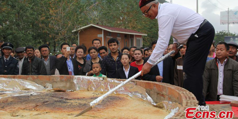A naan bread measuring six meters in diameter was unveiled in Ili Kazakh, China on August 19, 2014. According to local press reports, the ingredient list for this bead included 860 kilograms of flour and 60 kilograms of oil, and it was baked for ten hours in a specially constructed pit.